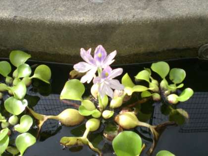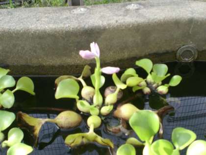 今朝ひょうたん池のホテイアオイに花のつぼみができていました。その26分後に偶然見てみると花が開いていました。