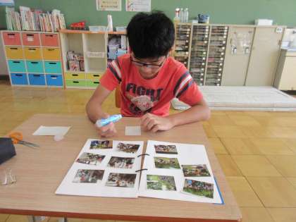 5年生は、花背山の家の思い出アルバムづくりをしています。今日は1日目の写真を貼るところまで頑張りました。次の時間は、3日目までの写真を貼り、思い出やエピソードを書き込んでいきます。