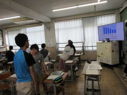 主な国の1年あたりの魚や貝の消費量のグラフを見て、気付いたことをペアの友だちと交流しました。
