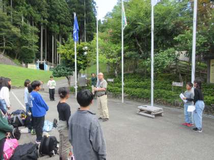 退所式。みんなで感謝の気持ちを伝えました。山の家の先生からも褒めていただきました。