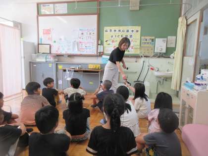 視力検査では、保健の先生の話を聞いて、集中して自分の視力について検査を受けました。