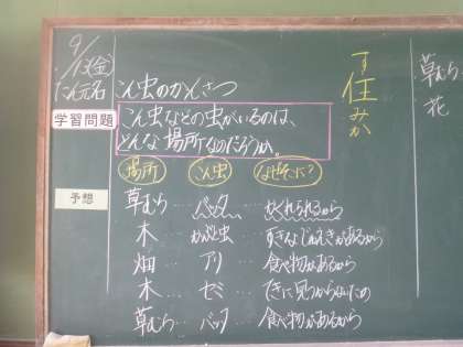 「こん虫のなどの虫がいるのは、どんな場所なのだろうか」という学習問題に対して、予想を持ちました。