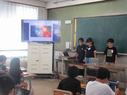 総合的な学習の時間では、今まで調べたことを学年で発表しました。桂川のことやごみ問題、SDGsのことなど、グループで発表しました。