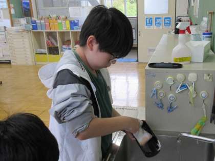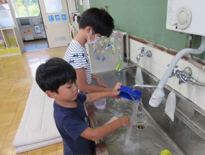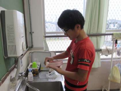 「洗い物をするの、初めて。」と言いながら洗っている子もいました。お家の方は、疲れていても毎日洗い物やさまざまな家事をしてくださっているのですね。