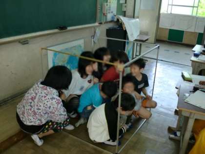 算数の「体積」の学習では,大きな体積を表すために,1立方メートルという単位を学びました。実際にその大きさを目で見てみると子どもたちはビックリ!