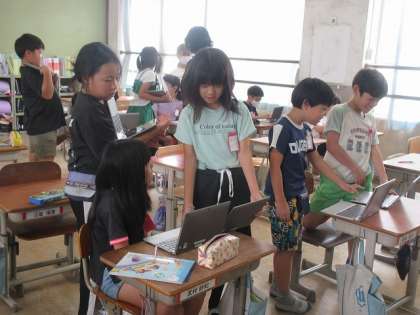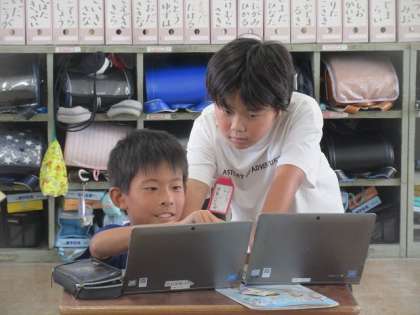 友だちと相談しながらタブレットのロイロノートを使って文房具セットをつくりました。