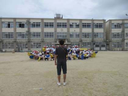 今日は外で練習です。自分の立ち位置を確かめ、全体の流れを確認しました。