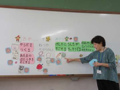 赤・黄・緑、それぞれの食品をバランスよく食べることの大切さについて、学習しました。