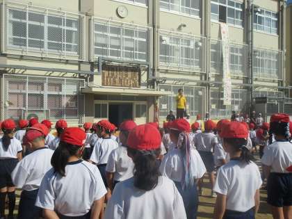 晴天の中、校長先生の話をよく聞き、気持ちを高めていきます。みんなの気持ちも高めて、すばらしい運動会にすることができればと思います。