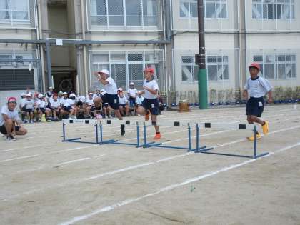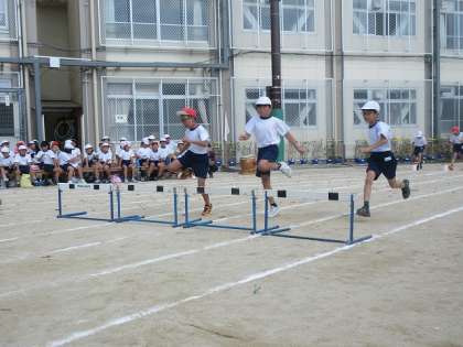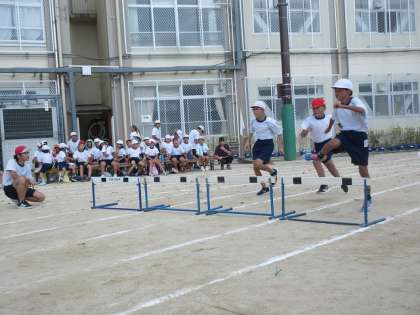 ハードルをしっかりまたぎ越し、自分の組のためにゴールに向かって一生懸命走ることができました。