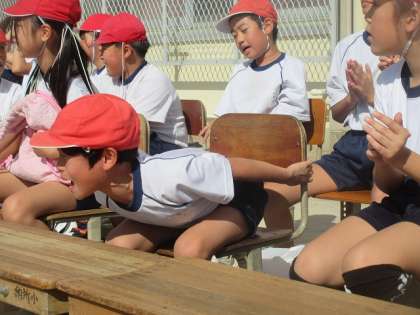 徒競走など、他の学年のことも一生懸命応援することができました。口を大きく開けて一生懸命応援している姿はかっこよかったです。
