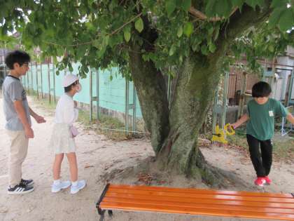 ・運動場…桜の木のまわり、鉄棒、手洗い場