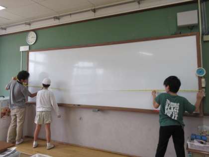 3年生と5年生が、メジャーを使って長さ調べをしました。