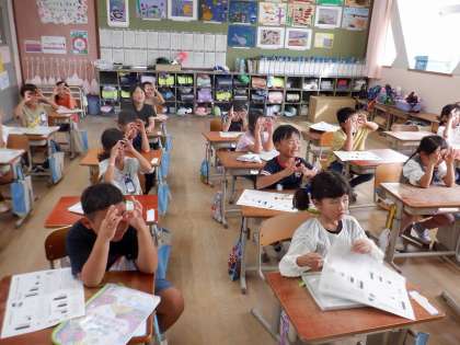 10月の保健の日の取り組みで、目の体操をしました。動画の校長先生のお手本を真似して、目を動かしたり、寄り目に挑戦したりしました。一つ一つの動きの後で、「オッケー!」をするのが楽しいです。