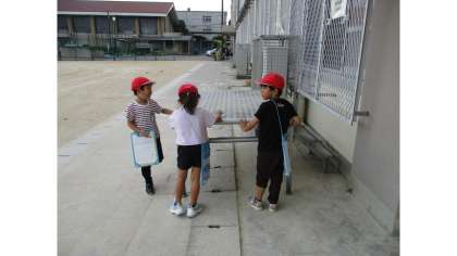 今日の学習では、実際に運動場に出て、運動場にあるいろいろな物を触って、触って感じた事を記録しました。子どもたちからは、「砂は、場所によって、触った感じが違ったよ。」「思っていたのと、ぜんぜんちがった。」など、色々な物に触ることを楽しんでいる声が聞こえてきました。