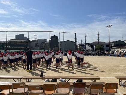運動会がんばりました!いよいよ始まるぞ!開会式の写真です。