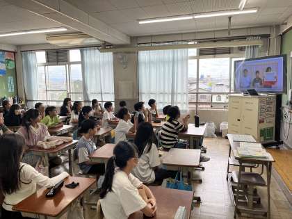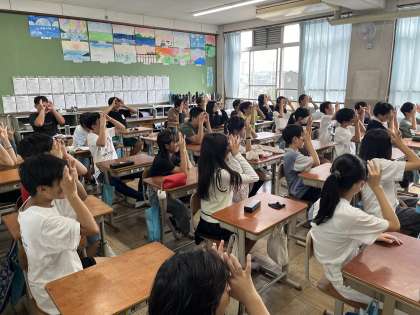 10月の保健だよりの配布に伴って、目の健康に関する動画を見ました。目の体操をしている様子です。
