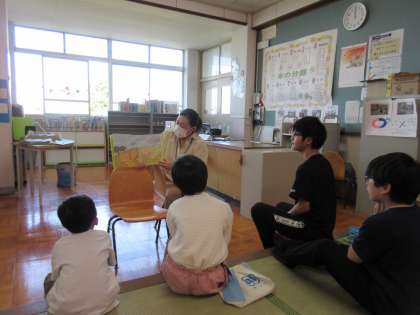 図書館司書の木曽先生に、「いもいもほりほり」という絵本を読み聞かせしてもらいました。