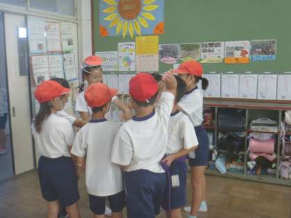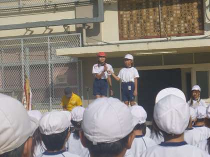 教室を出る前、みんなで円陣を組んで気合を入れました。3年生での運動会がスタートです!