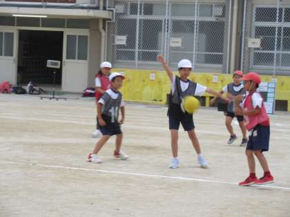 3年生は体育でポートボールをしました。ゲームが終わってからの後片付けも、しっかり頑張っていました。