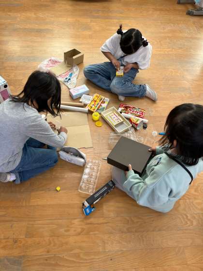 箱を切って形を変えるなど工夫しながら、だれが一番高く積むことができるのかを競い合っていました。