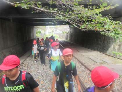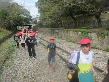 南禅寺船溜から蹴上船溜まで歩いていきます。足場は砂利道だったので、子どもたちは歩きにくそうでした。