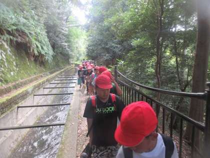 疏水の水路を歩きました。柵がなかったので、周りをよく見て安全には十分気を付けて歩きました。