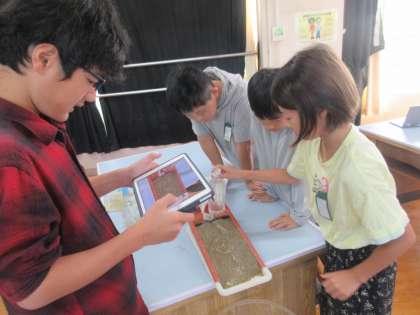 何度も土を入換え、水を流して実験しています。とても楽しんでいました。