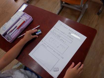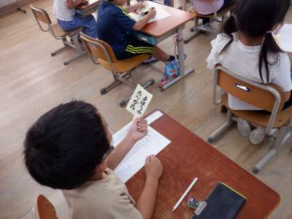 栄養教諭の北山先生と、「まほうのたべかた」の学習をしました。苦手な食べ物がなくなるように、じぶんのおまもりの言葉を真剣に考えていました。