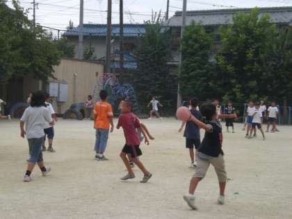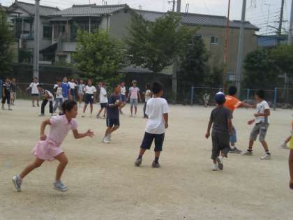 参加したい人だけでしたが,多くの子どもたちが必死にボールを取ったり、投げたり。