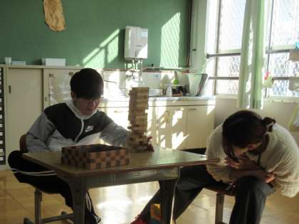 3組の5年生が、自立活動「てさきをつかって」の時間に、ジェンガをしました。