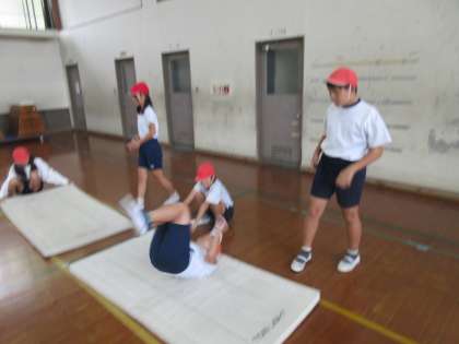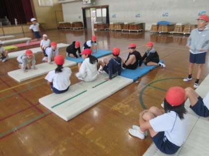 自分のねらいとする技に合わせて体慣らしをしました。そのため、一人一人体慣らしのメニューは違います。