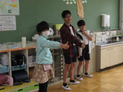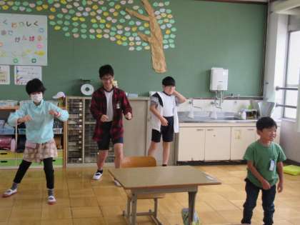 日常生活「3組タイム」では、毎日のようにのうそ健康チャレンジを踊っていますが、交流授業へ行く子も多く、今日は珍しく4人で一緒に踊ることができました。