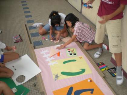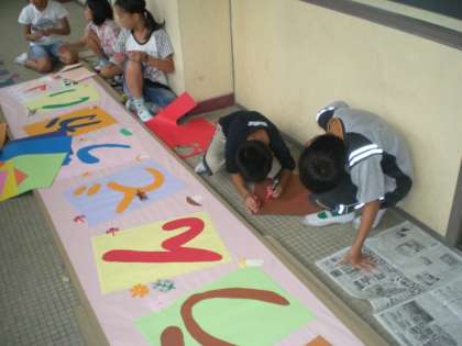 本日6校時に第1回運動会係活動がありました。大きなアーチの製作中です。