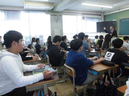 洛水中学校の先生に授業をしていただきました。これからの人生設計について、みんな真剣に考えていました。