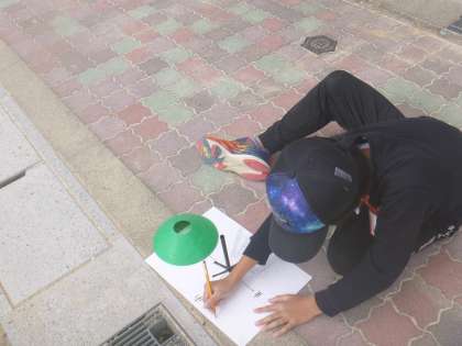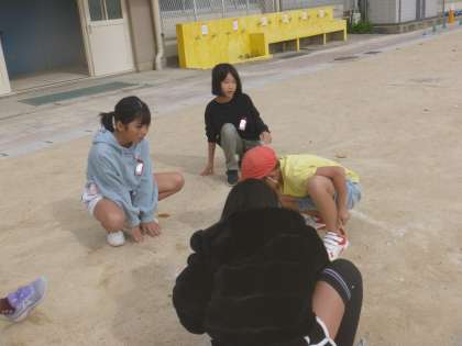 方位磁針も使いながら、かげの向きを観察しました。グループで協力ができたでしょうか!