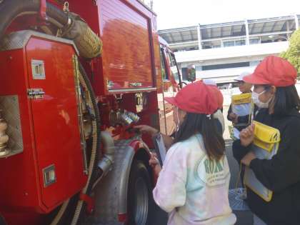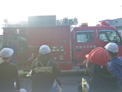 目の前の消防車に大興奮!!興味津々に質問をたくさんしている姿が見られました。