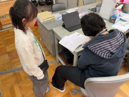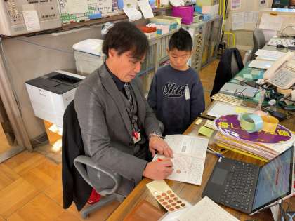 教頭先生と校長先生に算数のノートを正しく書けているのかを見ていただきました。