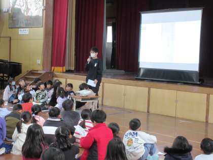 人権集会では、3組の代表として5年生が人権標語を発表しました。