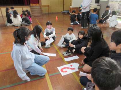 発表後、なかよしグループで集まり、自分が作った標語について交流しました。