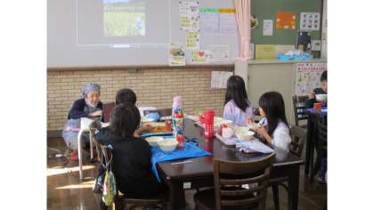 6日(金)の給食は、ランチルームで食べました。教室とは違い、友達と向かい合って食べるので、話もはずんでいました。栄養教諭の北山先生から、食の大切さのお話をしていただきました。
