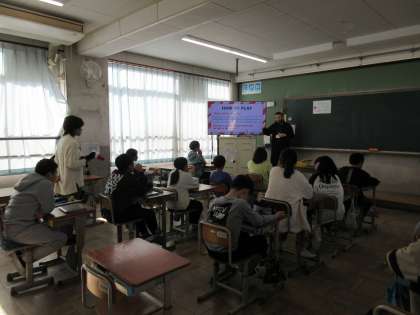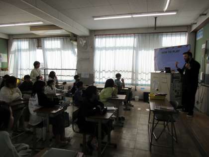 ALTのマックス先生とクリスマス会を楽しみました。英語のクリスマスソングを聴くゲームをしたり、クリスマスカードを書いたりしました。
