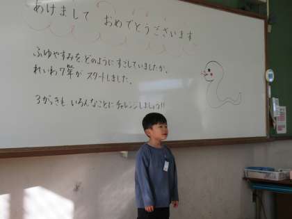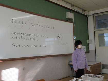 冬休みの思い出を話したり、3学期のめあてを書いたりしました。