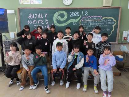 明けましておめでとうございます。今年もよろしくお願いします。1月8日子ども達が、学校に戻ってきました。休み中には、家族と一緒に過ごしたことやご馳走を食べたことなどたくさん話をしてくれました。お正月にインフレエンザにかかってしまったという児童が数名いました。手洗いやうがい、空気の入換えなどの感染対策をしていきます。8日には、全員がそろい元気に登校してくれて本当に嬉しかったです。3学期は、あっという間に終わります。まとめの学習もしっかり頑張っていきたいです。今学期もご支援よろしくお願いします。
