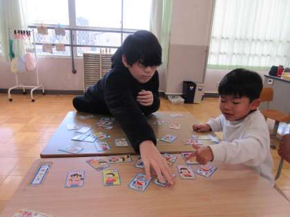 ドラえもんカルタ、乗り物カルタをして、大盛り上がり。取れたカルタの枚数も、しっかりと数え、伝え合うことができました。
