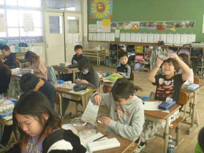 実験キッドをもらい、楽しそうに取り組んでいました。