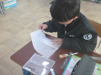 三角定規の角を紙にうつしとって、角の大きさを比べました。