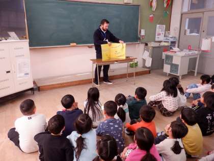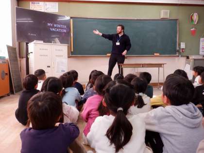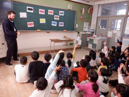 1・2組合同で、マックス先生と英語活動の学習をしました。マックス先生の冬休みのお話を聞いてから、色がたくさん出てくる絵本を読んでもらいました。一緒に「Red!」「Yellow!」と声に出しながら、色の言い方を覚えていました。ミッシングゲームも盛り上がりました。