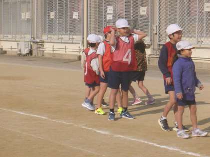「ランナーは、ボールがとぶ方向をよくみて走ったほうがいい!」「キャッチが上手な人は、1塁を守る!」などと、ゲームを振り返ることができました。