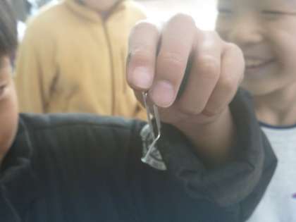 これは、「磁石になったのかな?」「磁石の力がうつったのかな?」などと、子どもたちはたくさん予想していました。